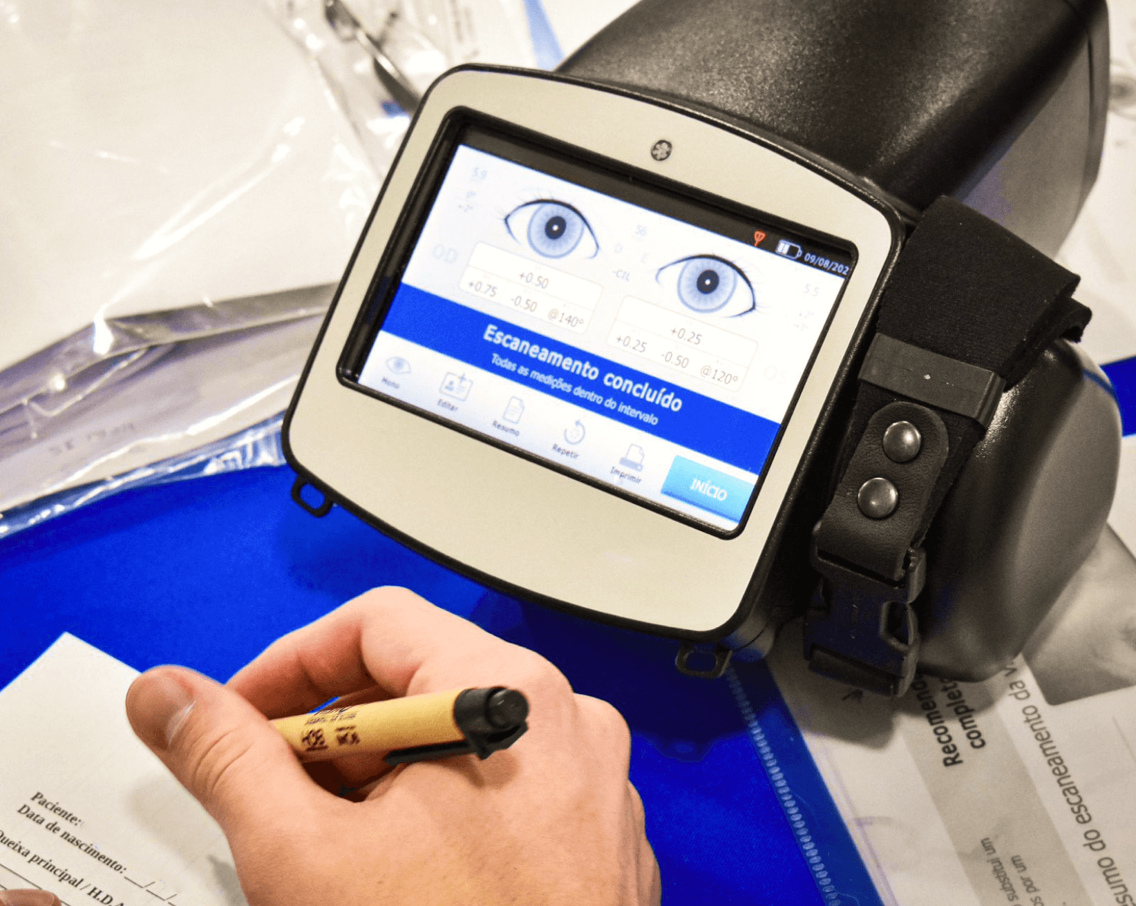 Permitindo uma avaliação em poucos segundo e sem dilatação de pupila